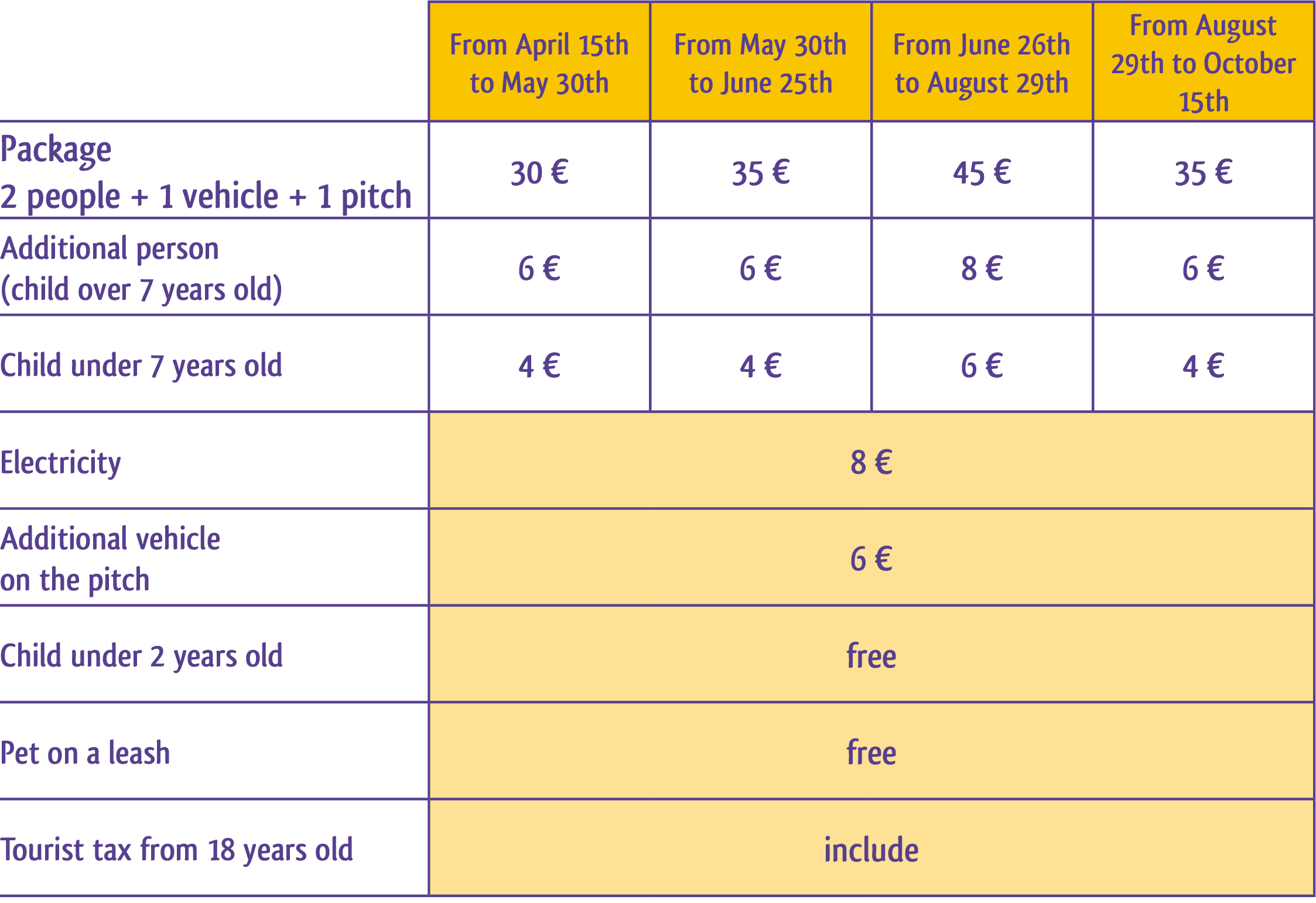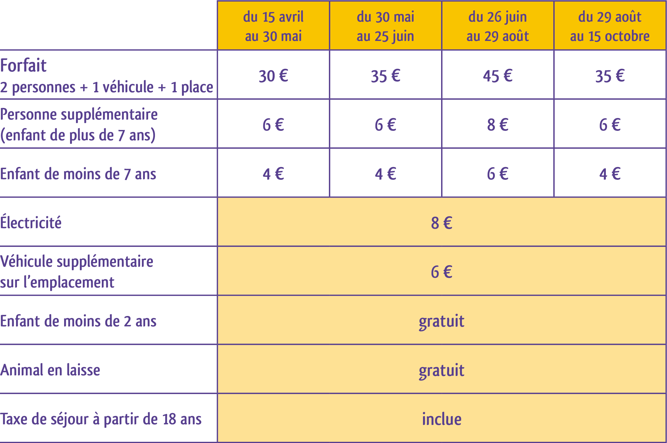 Les locations d’emplacements sont disponibles à  partir  de 14h et se libèrent à  11h.